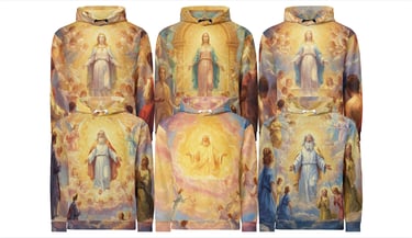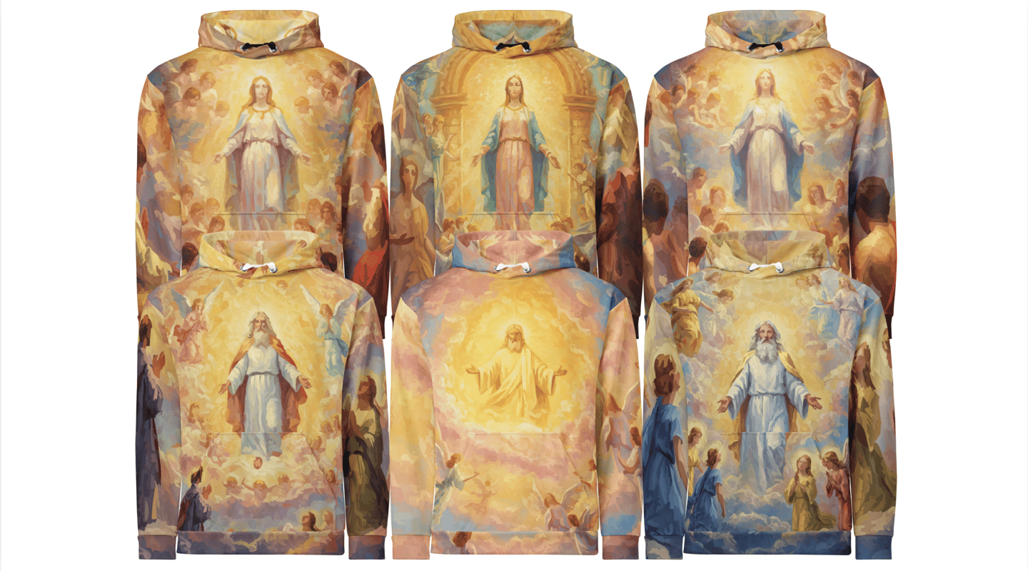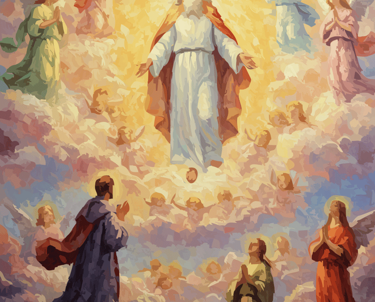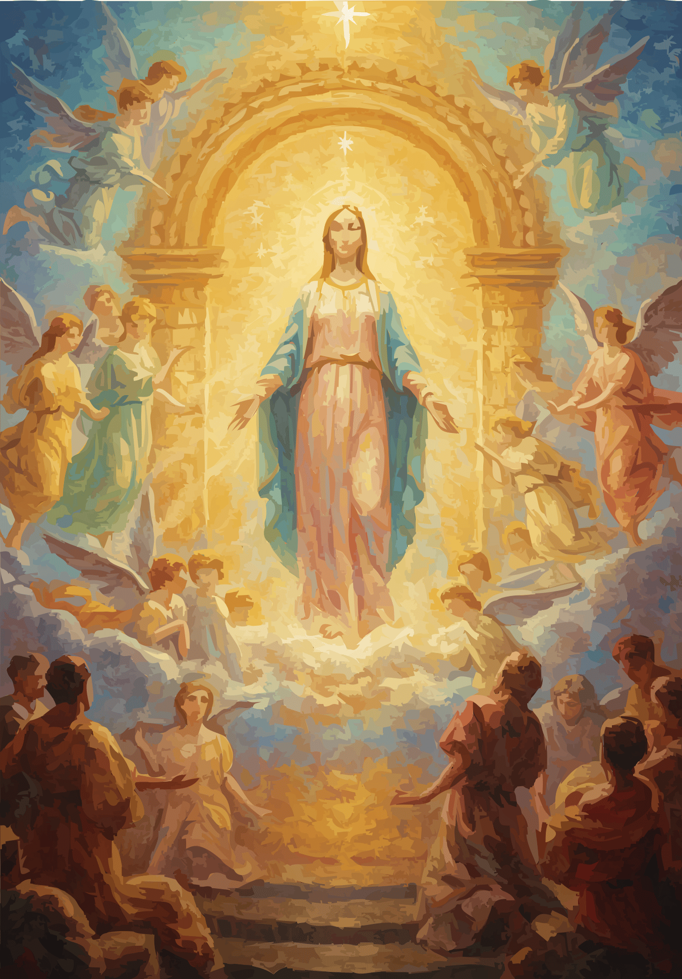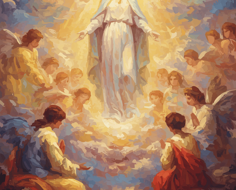 Behold the source, not the statue. From a radiant, genderless core, creation spirals outward in a vortex of feather and fervor. Angels are not attendants, but energetic extensions—a tempest of teal, gold, and crimson that renders the sky a cathedral of pure, joyous genesis.